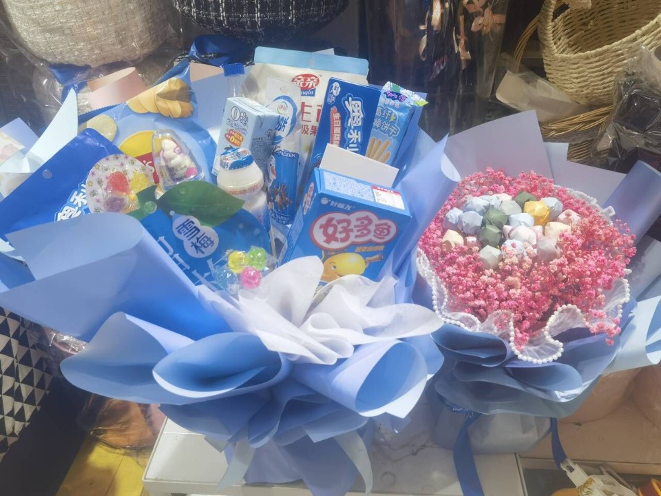 随后,记者采访到了鲜花店的杨女士:“高考期间很多家长给孩子订花,订单比平时多了不少,现在年轻人不再拘泥于传统的鲜花形式了,会选择更新颖有趣的款式,零食花、造型花等等。”