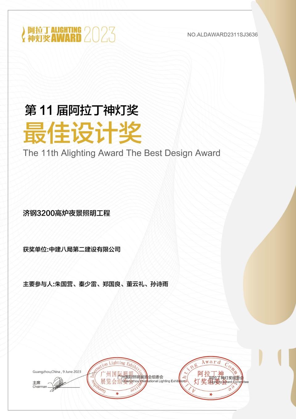 近日,中建八局二公司智能公司承建的两个夜景照明项目荣获第十一届阿拉丁神灯奖。其中,济钢3200高炉夜景照明工程获最佳设计奖 (城市&景观照明设计类别),临沂鲁班国际精装物流中心泛光照明工程获优秀设计奖 (建筑外立面照明设计类别)。