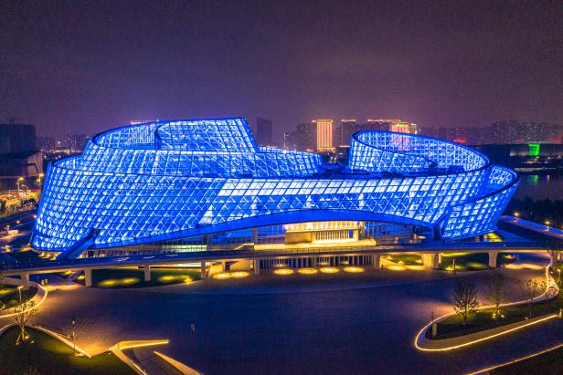 项目位于阜阳市城南新区。其中,图书馆外立面以“汉书竹简”为设计元素,内立面采用超大分格玻璃幕墙和实心钢立柱结构;博物馆设计中将阜阳“汝阴宫当”的艺术元素融入到博物馆的外立面设计中,“石开玉现”的造型寓意阜阳深厚的文化底蕴。项目夜景照明总体以明暗虚实来展现建筑厚重的空间体积与肌理层次感,诠释出建筑独特的风格造型与内涵。项目获得2020年金手指奖“建筑工程二等奖”。