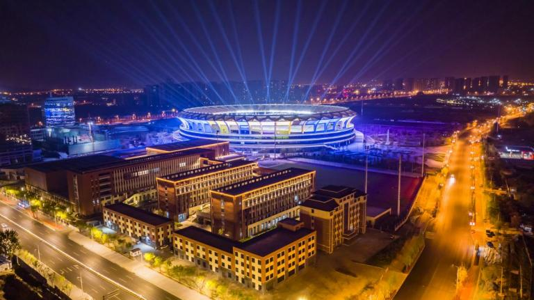 项目位于胶州湾北部青岛市高新区。夜景照明设计注重科技与文化的融合,重点突出建筑个性,致力做到“见光不见灯”。同时,结合“海之沙”“云之贝”的建筑造型解读,用灯光阐述现代简约、艺术典雅的设计理念,通过灯光色彩的变化展现体育文化的丰富性和多样性,赋予建筑现代性、时尚感等特质。此外,项目采用LED绿色环保灯具,实现绿色照明,严格控制光污染。项目获得2018年山东绿色照明奖“工程设计三等奖”、2019年中国景观照明奖“工程设计三等奖”。