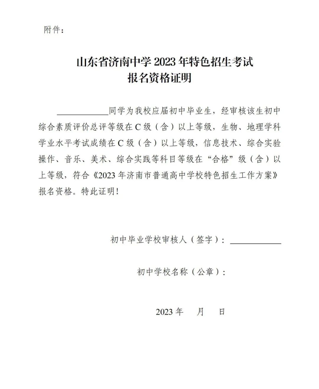 附件:山东省济南中学2023年特色招生考试报名资格证明