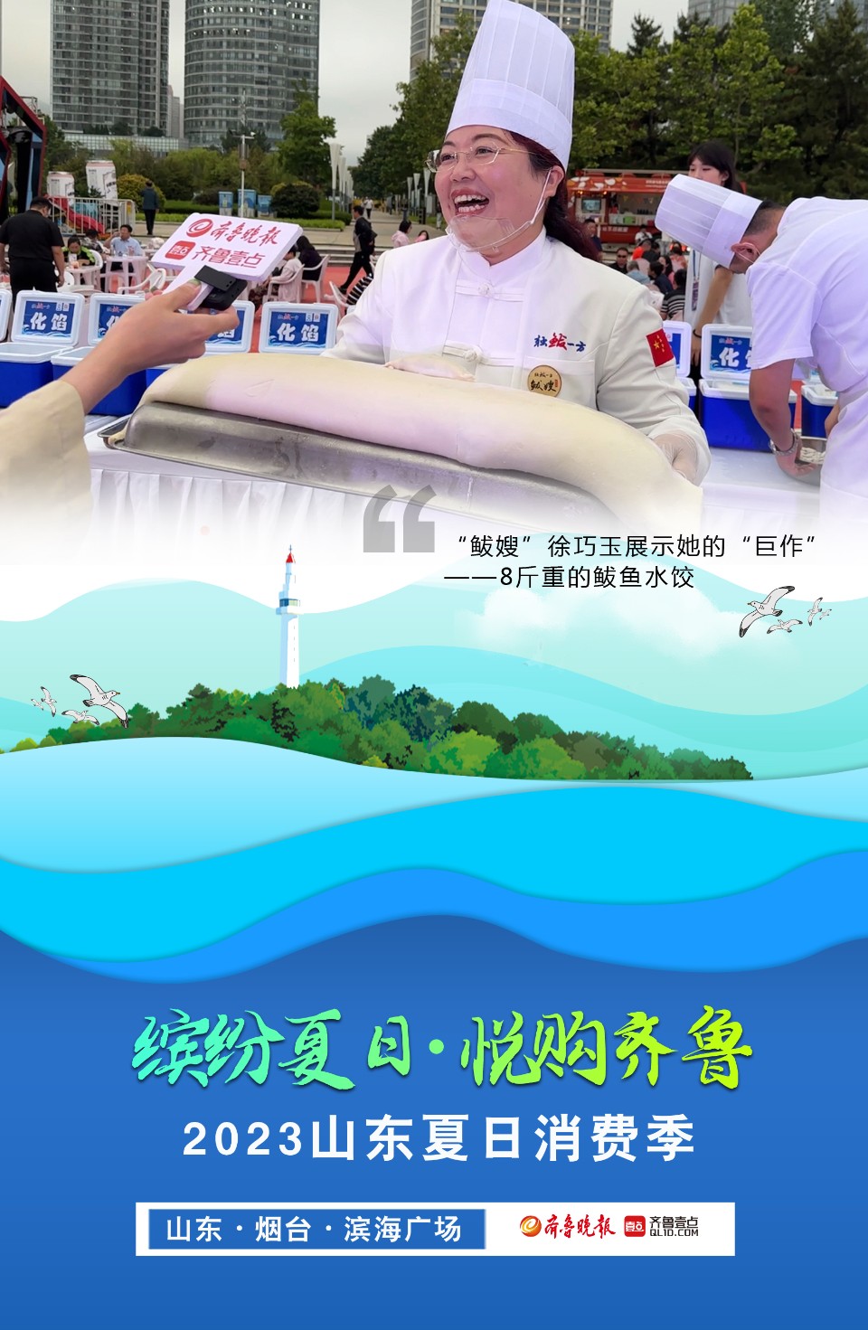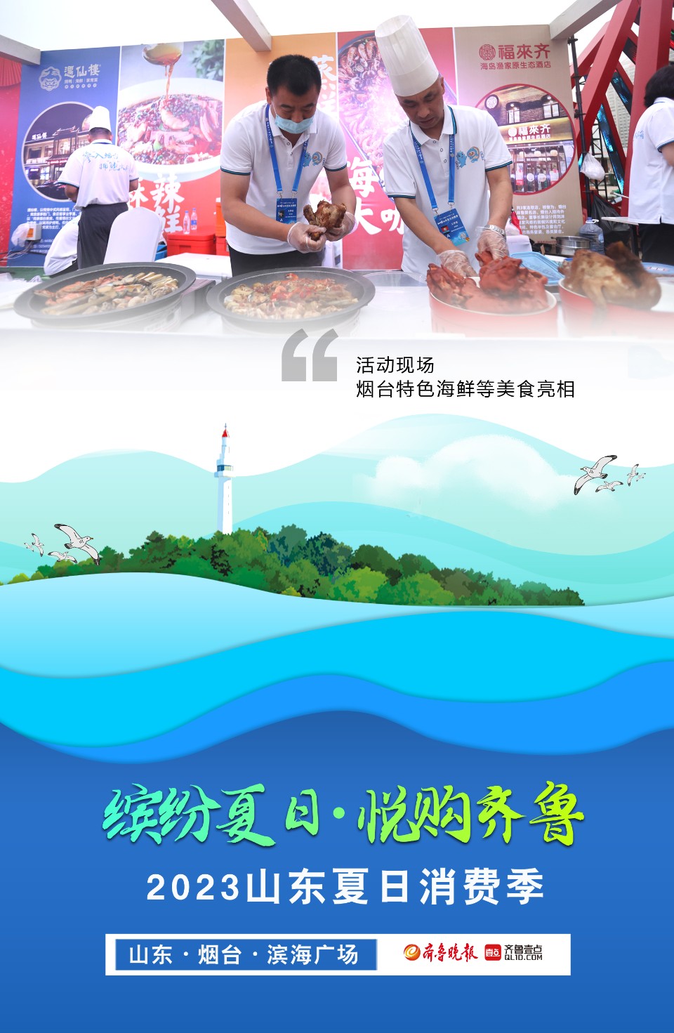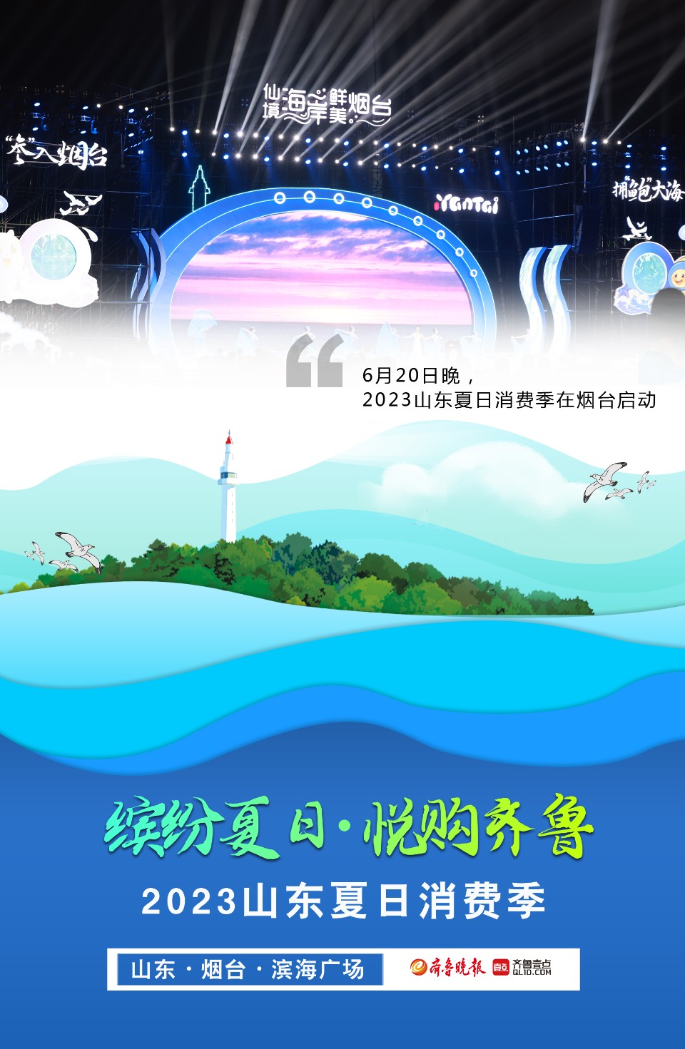 长图壹站|直击精彩瞬间!2023山东夏日消费季在烟台启动 大众报业·齐鲁壹点 2023-06-21 1165 6月20日晚,2023山东夏日消费季启动仪式在烟台举行,此次活动以“缤纷夏日·悦购齐鲁”为主题。活动现场设置了消费场景展区,烟台特色美食香气远飘,巴掌大小的鲅鱼水饺、美味的红酒、雕花造型的各种美食琳琅满目,吸引了不少游客前来品尝。650架无人机在夜空中上演灯光秀,惊艳绝伦。壹点海报为你展现精彩瞬间,带你感受现场热烈气氛。 (记者 吕奇 制图 邵舒琨) 责任编辑:武春虎