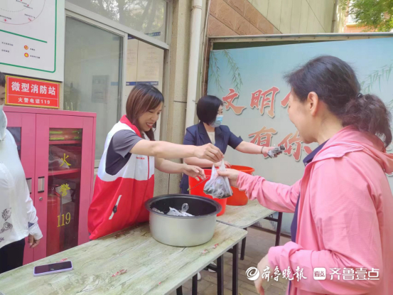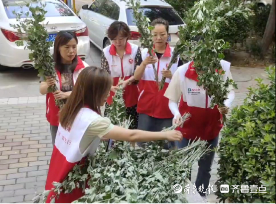 粽子煮熟后,社区巾帼志愿服务队带着包好的粽子来到辖区老党员、空巢老人、困难家庭和残疾人家中,亲切询问了他们的生活、身体状况,并为他们送去节日的祝福。最后工作人员在每家每户居民门口挂上寓意招百福、防蚊驱虫的艾叶。