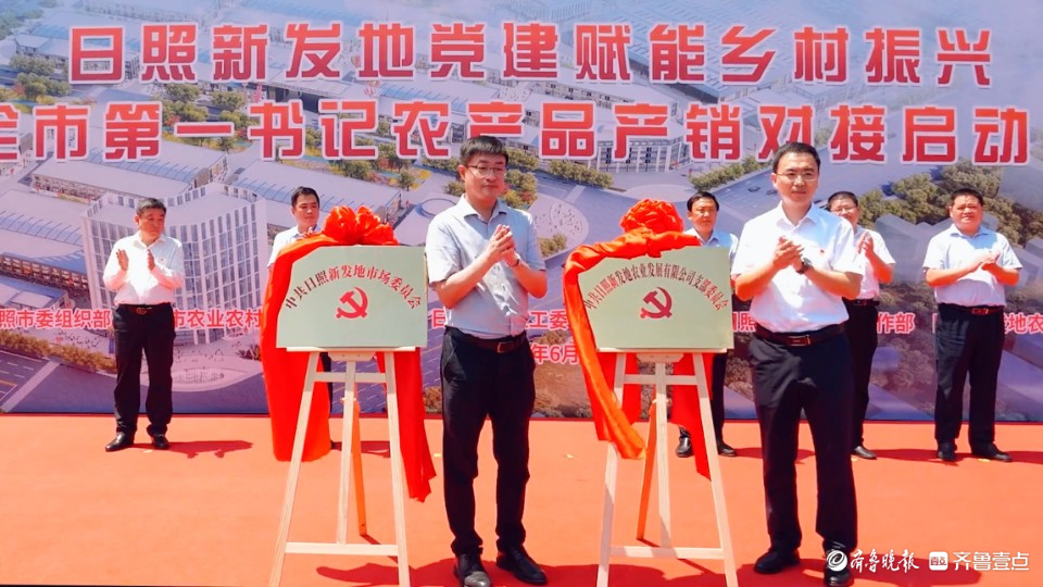 为进一步强化党建引领、助力乡村振兴,通过党组织凝聚各方合力,促进社企联动、互利共赢,6月21日上午,日照新发地党建赋能乡村振兴暨全市第一书记农产品产销对接启动仪式。现场,日照市委组织部副部长孙鹏霄与日照高新区工委委员、管委副主任徐明启共同为日照新发地市场党委、日照新发地农业发展有限公司党支部揭牌,出席仪式领导为党员经营户代表授牌。来自全市各区县的部分驻村“第一书记”和新发地商户参加了活动。