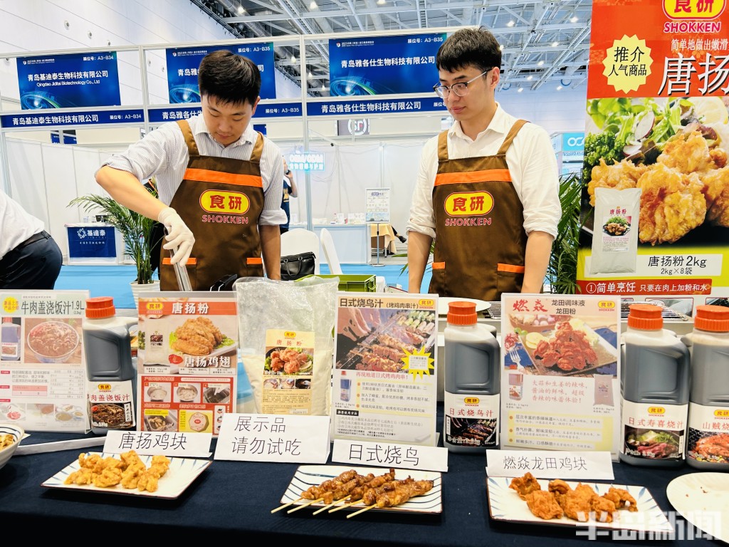 日式烧鸟、龙田鸡块、鱼香虾饼……对接会现场,丰富多样的食品试吃吸引了众多市民驻足体验。此次参加展会的日本食品企业有上海住友、北京丘比、山东日冷、秀爱食品等。来自城阳的利和味道、鑫复盛等企业也带来了蒲烧鳗鱼、流亭猪蹄等特色美食。