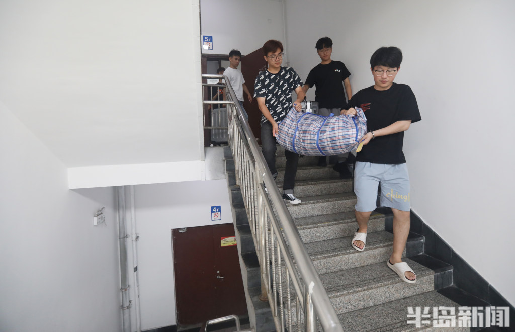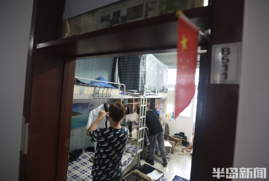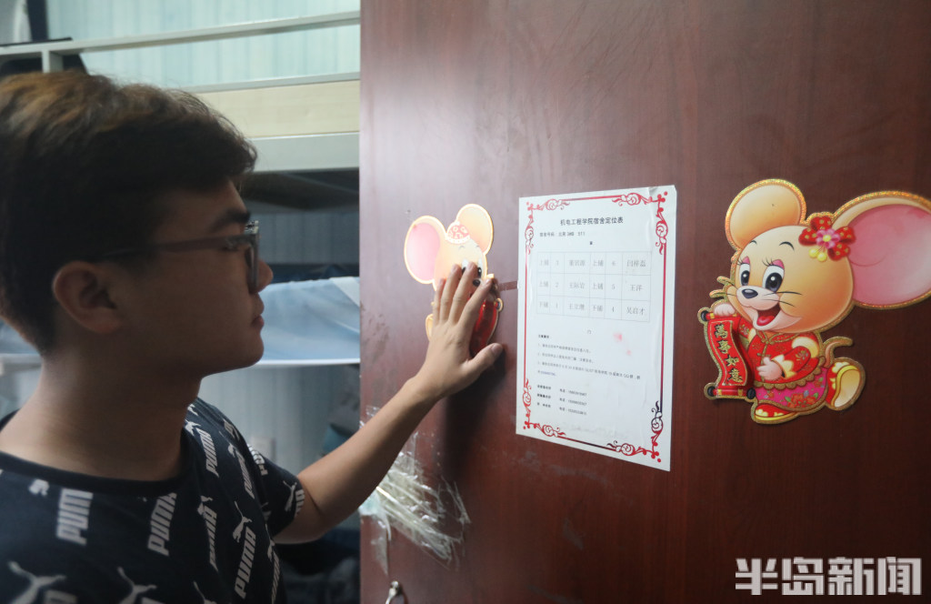 又到一年毕业时,青岛科技大学崂山校区一宿舍楼内,机电工程学院机械实验191班511宿舍的同学闫祥磊、王立瓒、吴启才、董居源、王际岩都在收拾行李,其中毕业生王立瓒在看着宿舍门上的定位表,这张表从2019年入校时就贴在了门上,如今已经过去了四年,见证了他们日常的生活、学习和考研奋斗之路。现在他们宿舍的5个人全部考研成功,毕业后将各奔东西,开始自己新的学习道路。