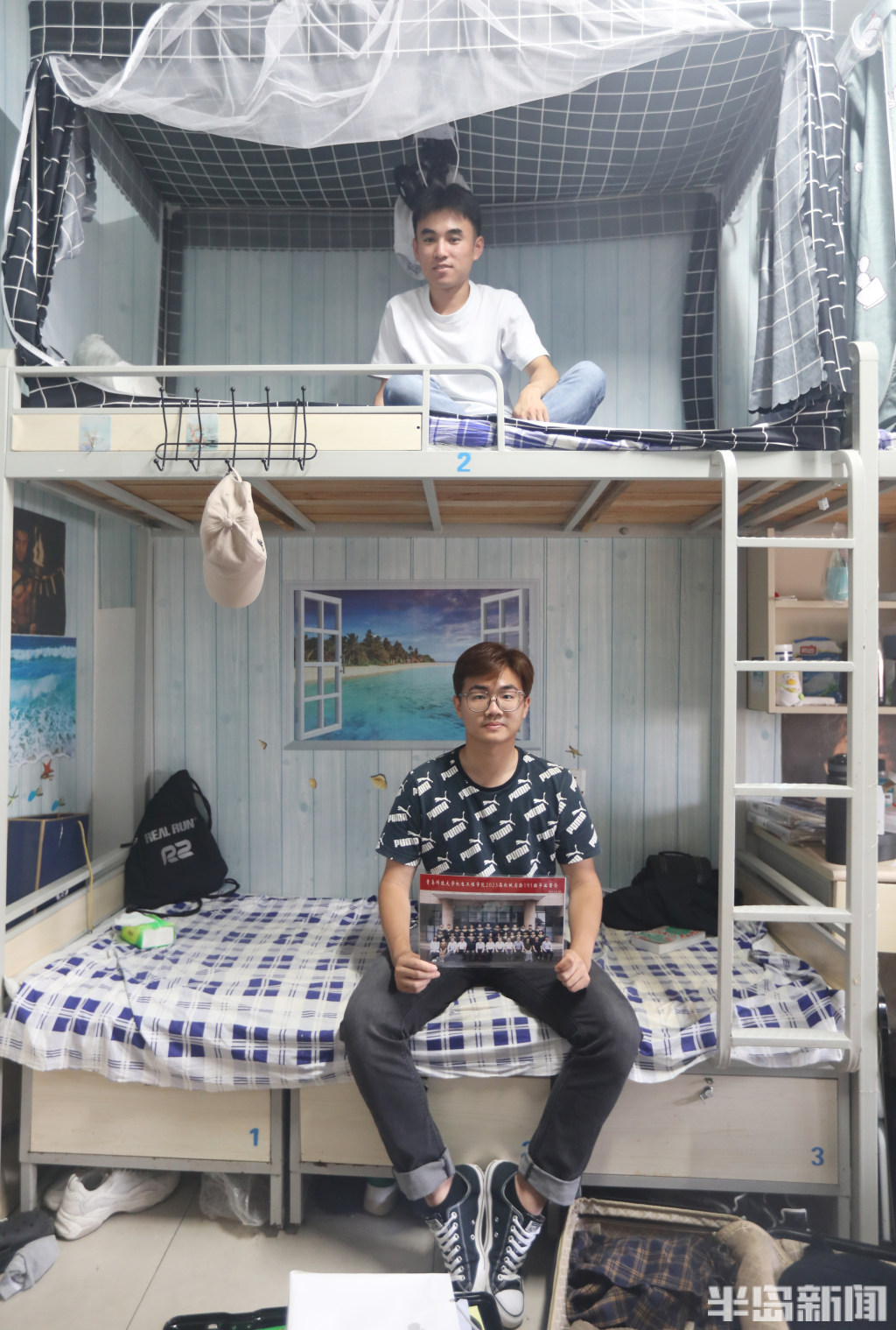 宿舍里,王立瓒拿着毕业照。