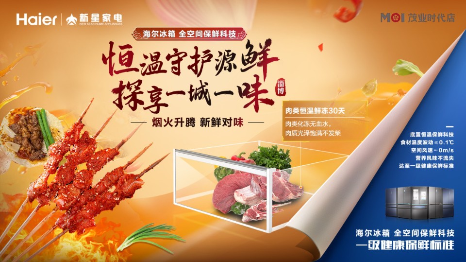 恒温守护源鲜,探享一城一味——日前,海尔博观冰箱携手山东新星家电、临淄茂业时代广场一起开启“淄博烧烤之夜”,邀请市民游客现场品尝淄博烧烤美味,发布淄博烧烤食材保鲜奥秘。
