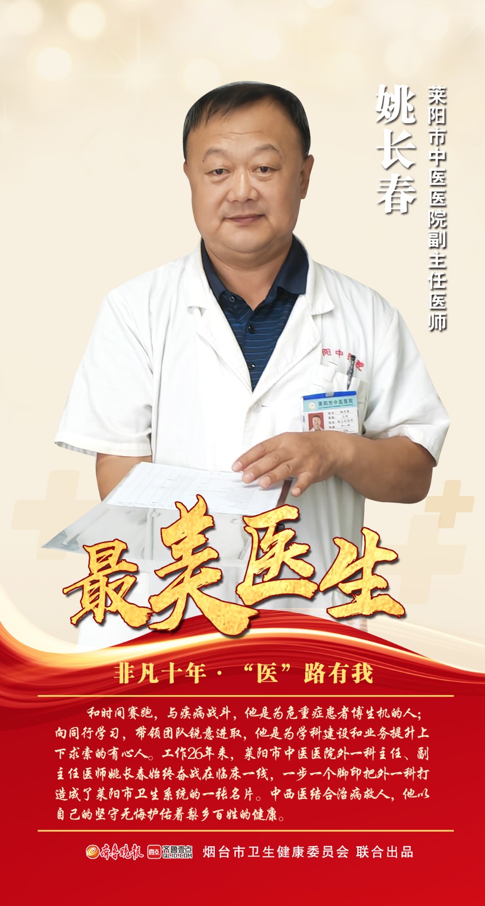 和时间赛跑,与疾病战斗,他是为危重症患者博生机的人;向同行学习,带领团队锐意进取,他是为学科建设和业务提升上下求索的有心人。工作26年来,莱阳市中医医院外一科主任、副主任医师姚长春始终奋战在临床一线,一步一个脚印把外一科打造成了莱阳市卫生系统的一张名片。中西医结合治病救人,他以自己的坚守无悔护佑着梨乡百姓的健康。
