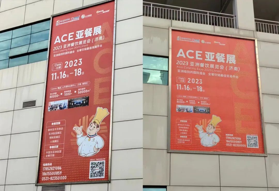 近日,ACE2023亚洲餐饮展览会(以下简称ACE2023亚餐展)外墙悬挂海报亮相全国最大肉类水产品冻品集散地——维尔康市场。