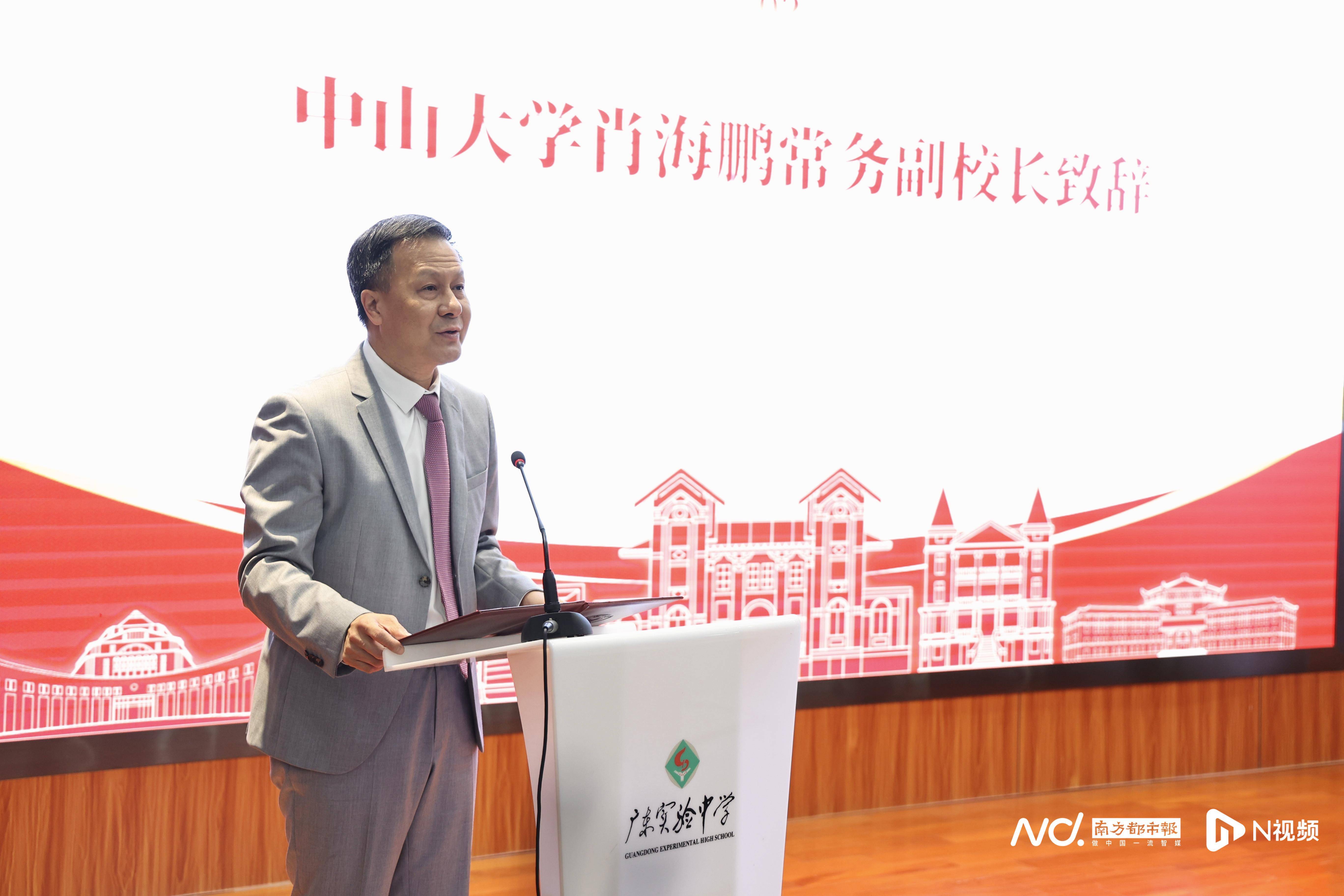 广东实验中学党委书记、校长全汉炎指出,跨越百年历程,广东实验中学和中山大学一脉相承,有着相似的文化背景和深厚的历史渊源,一百年来共同为国家培养了众多杰出人才,优秀校友遍布世界。省实学子陈麒羽同学的亲友之中,就有多位中大校友、省实校友,其叔叔陈庆生更是两所学校的校友。今天的仪式,见证着省实与中大的深厚情谊,也体现了两校对为国育才、厚植强基的共同追求。“希望省实与中大能延续百年的缘分,协同探索高等教育与基础教育的有效衔接路径,共同推进为国育才事业。”
