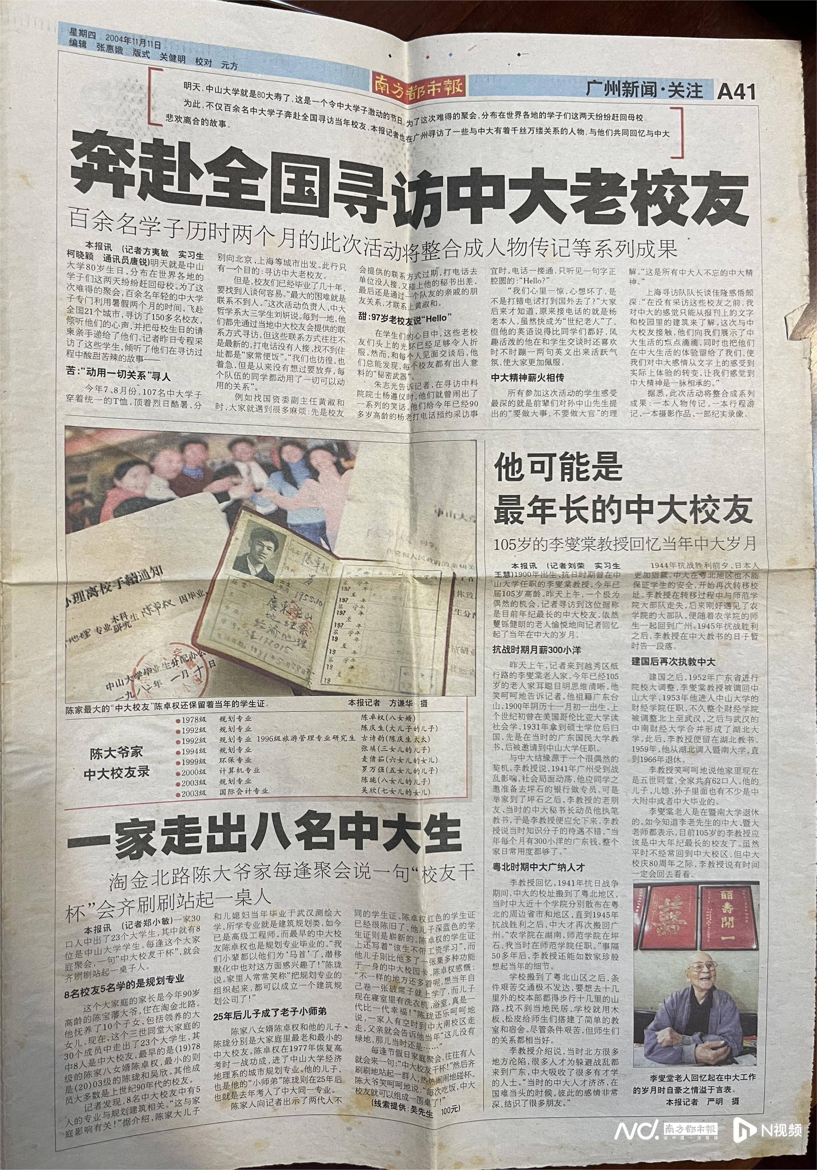 2004年,南方都市报推出“奔赴全国寻访中大老校友”专题。
