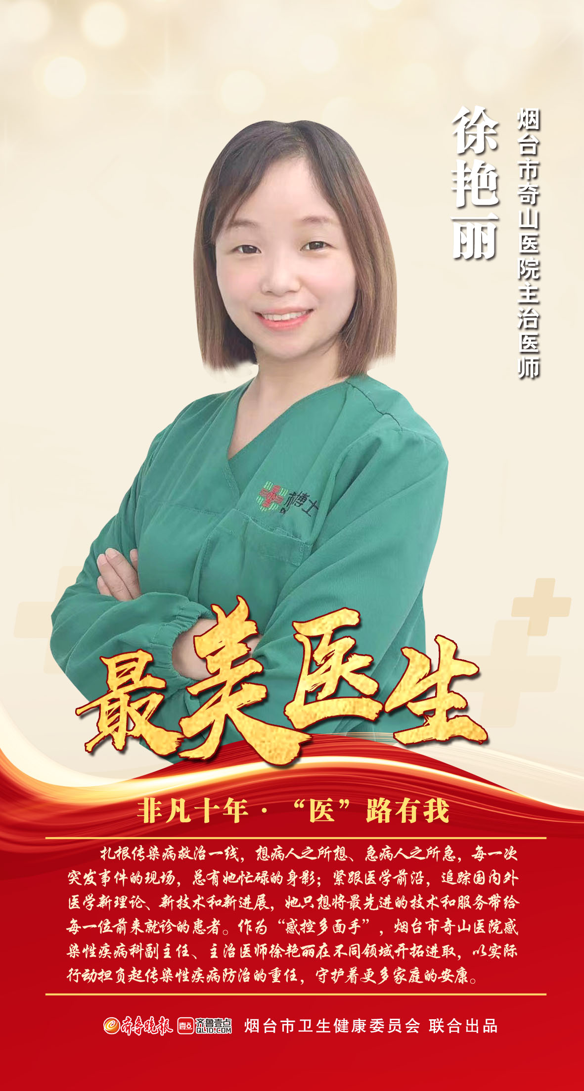 或勇于创新,以精湛的技术为生命护航;或无悔付出,始终奔忙在照护患者的最前线;或医德馨香,以满腔热忱护佑患者的就医之路。“烟台卫健这十年”涌现出了很多先进典型,为弘扬新时代卫健工作者职业精神,凝聚榜样力量,增强卫健工作者的责任感、使命感和荣誉感,即日起,齐鲁晚报·齐鲁壹点联合烟台市卫健委推出“非凡十年,‘医’路有我”系列专题报道,聚焦“医”路守护人民健康的医护人员代表,记录他们以行动践行救死扶伤的点滴瞬间。