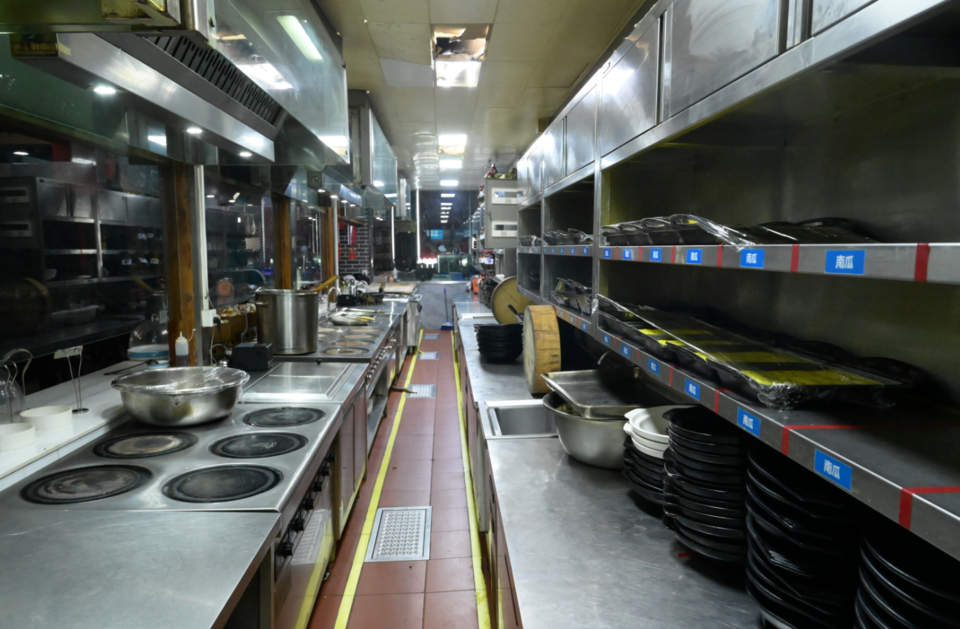 在后厨内,虽然午餐时间刚过不久,但整个操作台已经打扫的一尘不染,未使用完的原材料也都已经封上了保鲜膜。“这些食品原材料冷却后还将分门别类放入冰箱冷藏,这样保证原材料不会变质。”酒店工作人员介绍。