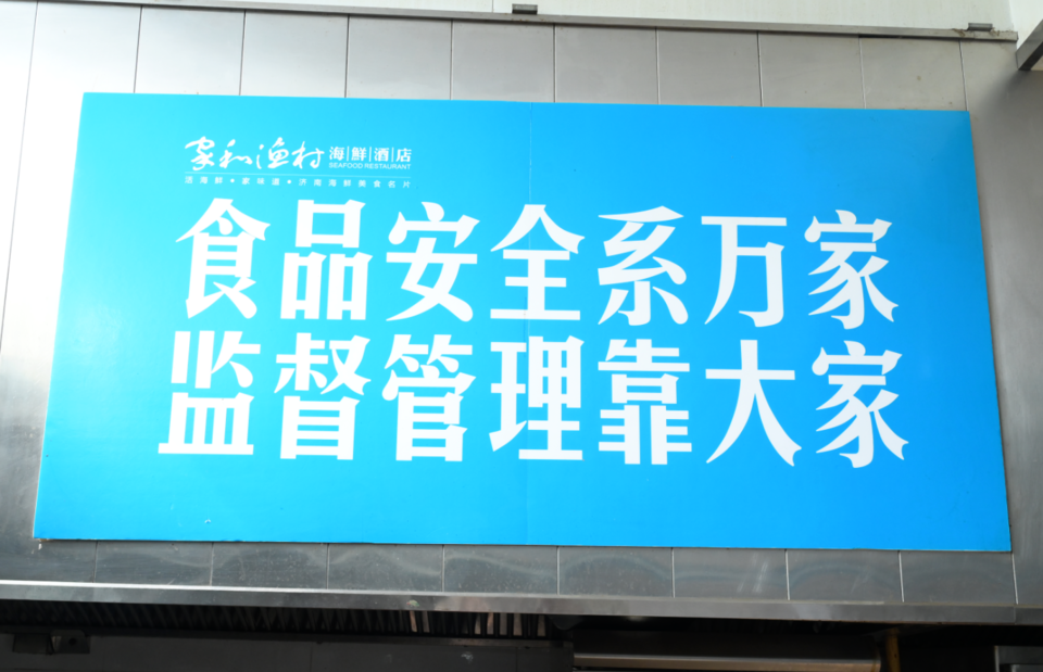 在家和的操作台上方,悬挂着一块蓝色标识,上面印着“食品安全系万家,监督管理靠大家”14个大字,在另一侧墙上还挂有砧板刀具色标管理规定。“作为餐饮企业,食品安全至关重要,特别是对于我们这种连锁品牌,一旦某家门店出了问题,影响的将是整个品牌,所以家和渔村成立至今就非常重视食安问题。”酒店负责人表示。
