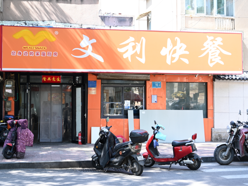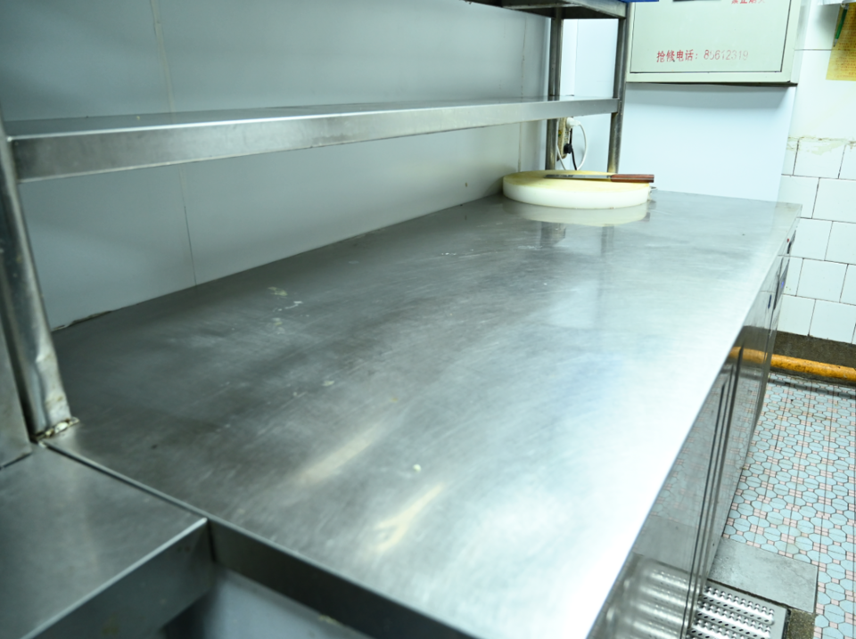 下午3点,已经是闭餐时间,文利快餐的工作人员已经把后厨清理了一遍,操作台和置物架上已经打扫干净,除了泡发好的豆芽和木耳以外,当餐未用完的原材料已经分类储存完毕。