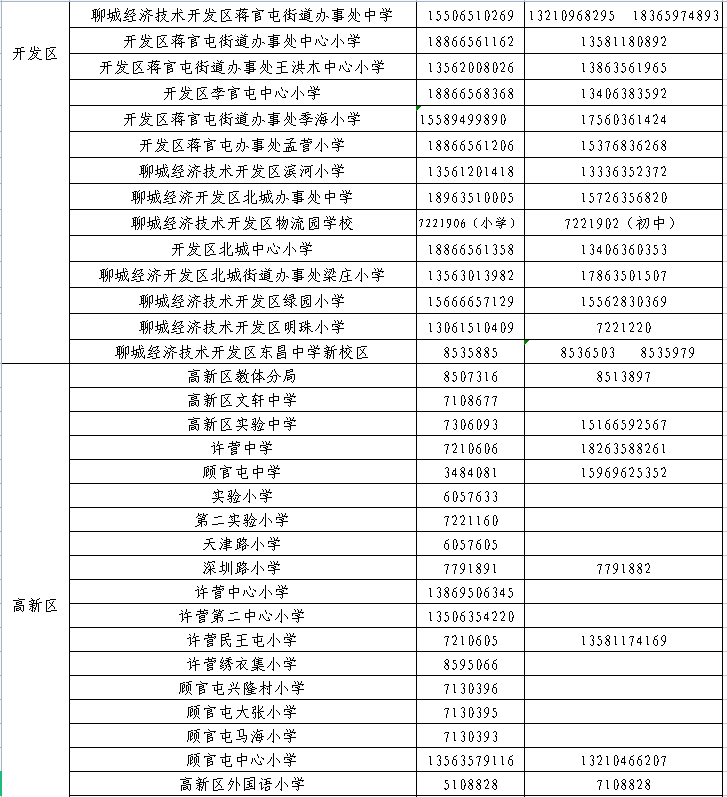 聊城市“一城四区”2023年义务教育学校招生咨询电话