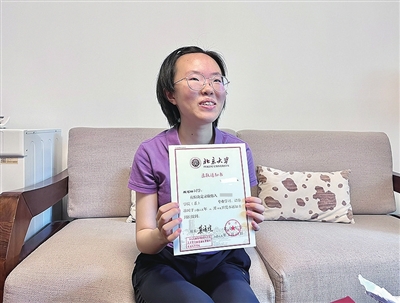 小心拆开包裹,一本套着红色外皮的录取通知书显现出来,殷艺轩看着捧在手上的录取通知书,不禁露出了笑容。“感到非常激动,这么多年的努力有了回报。希望能在北京大学好好学习物理,未来能为国家的基础科学事业做出自己的贡献。”据悉,殷艺轩从小就对物理学感兴趣。上了高中后,就将考入北京大学物理学院作为自己的目标。“因为北京大学物理学院有着全国最优秀的物理学专业。”殷艺轩说。为了自己的目标,殷艺轩高一便学习物理竞赛。在每次考试结束之后,她都会仔细分析试卷,寻找问题的根源,提升自己的学习效率。