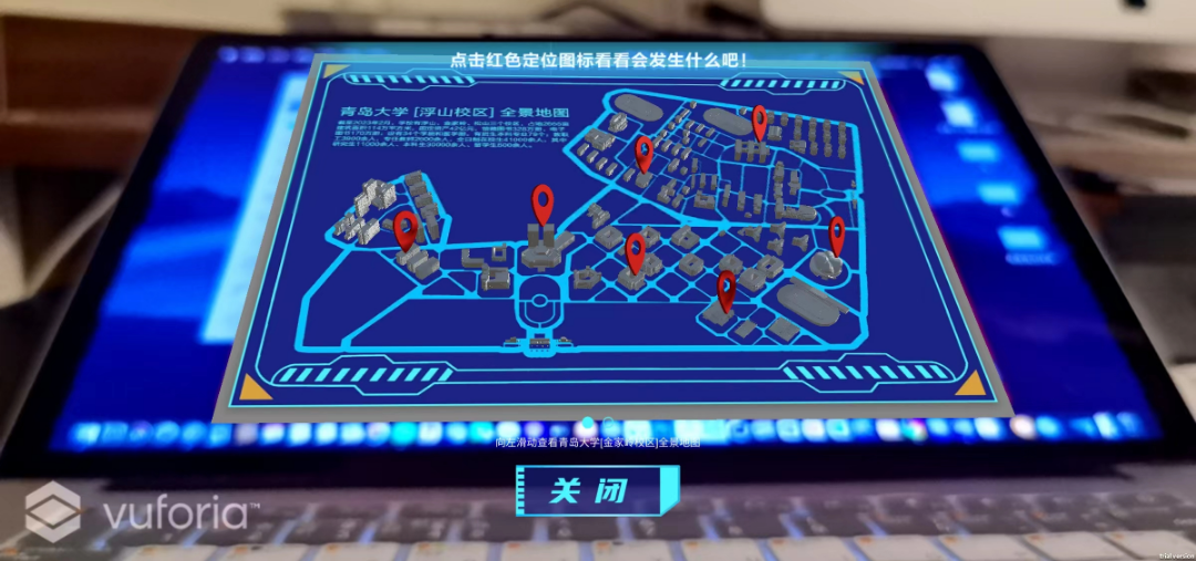 AR版录取通知书在设计创意上围绕 “一展青大风采,迎接未来新生” 这一主旨,结合增强现实技术,将二维平面的纸质通知书以立体三维的分层动画形式呈现,并以依托实景的三维立体虚拟全景地图向全国各地的新生们展示青大校园,希望带给学子们身临其境的惊喜感受和对未来的美好憧憬。