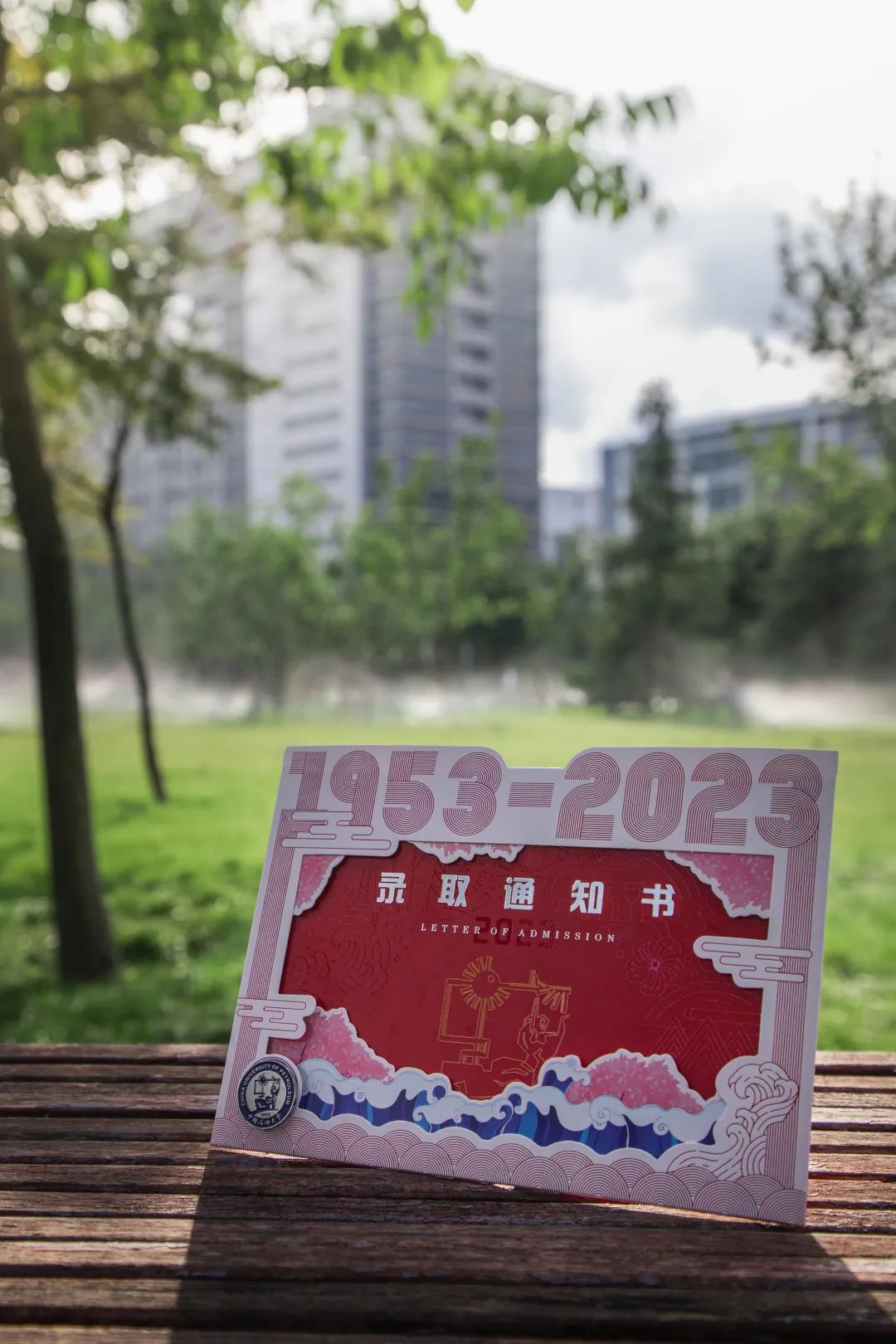 镶嵌在录取通知书下方的金属徽章