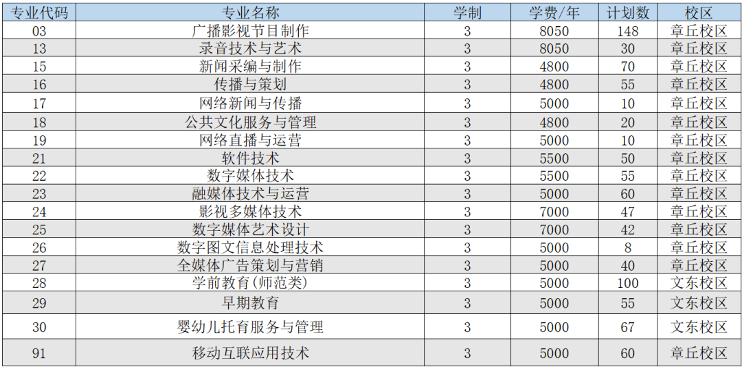 山东传媒职业学院省内报考代码:E193