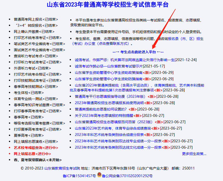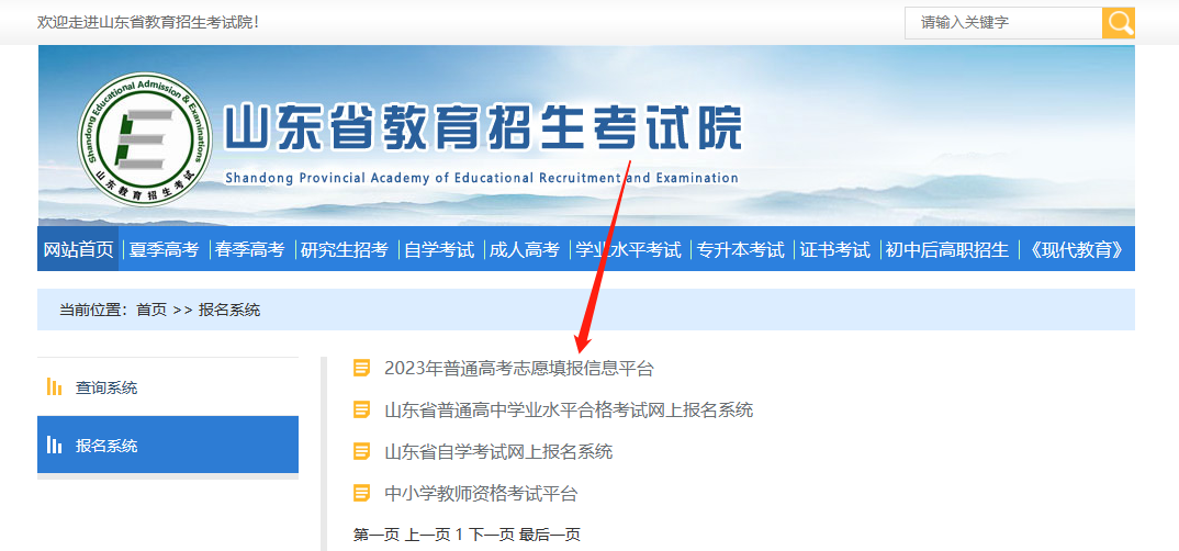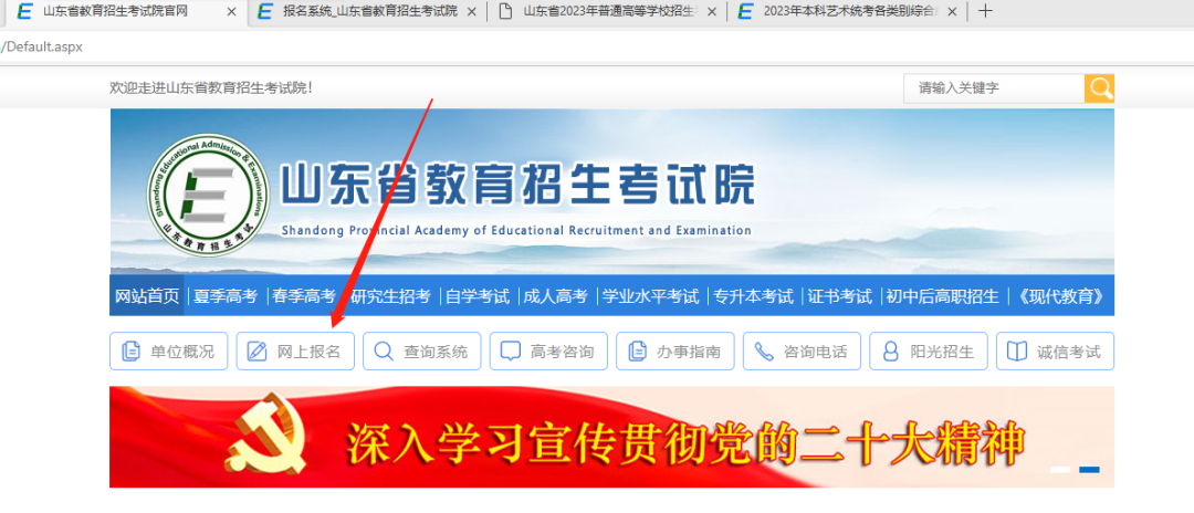 (1)登录山东教育招生考试院官方网站: