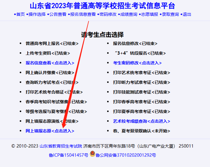 第四步:点击“网上填报志愿(点击进入)”