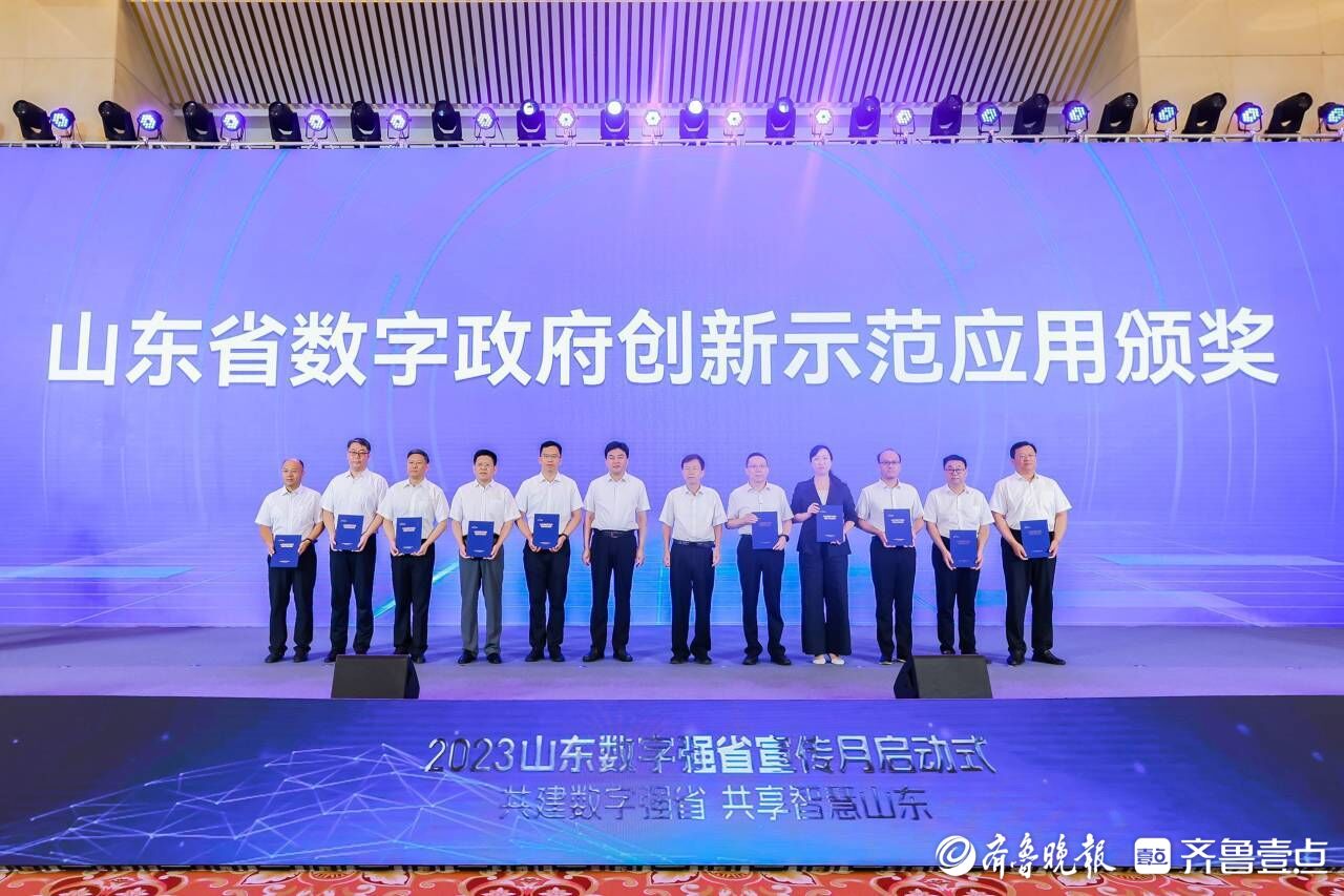 启动仪式上,发布了2023山东数字强省宣传月方案,首发《山东省机关工作人员大数据基础知识读本》,上线了数字政府系列平台、应用,发布了数字强省建设系列成果,通报表扬了省数字政府创新示范应用、省新型智慧城市建设优秀案例等。其中,青岛市“‘全市一个数字机关’应用”获评省数字政府创新示范应用“十佳应用”;青岛文达通科技股份有限公司、青岛市建筑工程管理服务中心获山东省新型智慧城市建设优秀案例;青岛海信网络科技股份有限公司获山东省数字基础设施建设突出贡献企业。省委常委、常务副省长曾赞荣向“2023黄河流域生态保护和高质量发展——数字山东行”省级党报全媒体行活动媒体代表授旗,启动宣传月。当晚16市联合开展“点亮数字山东”主题灯光秀活动。