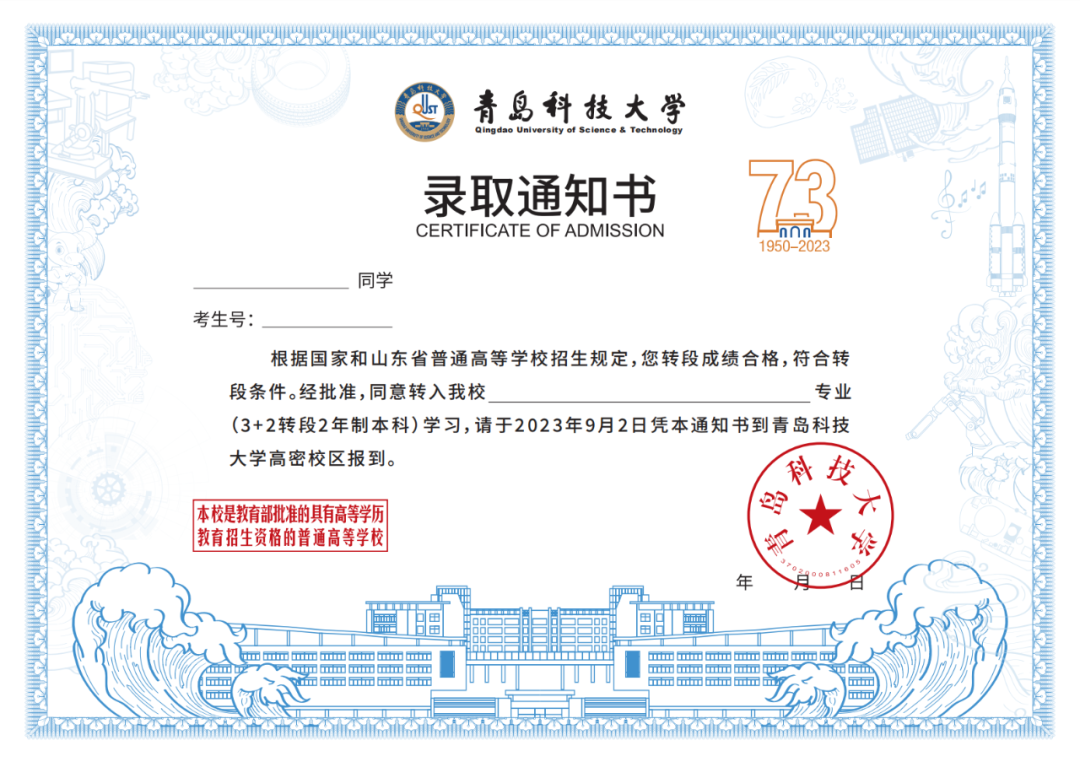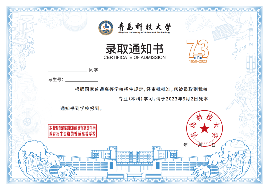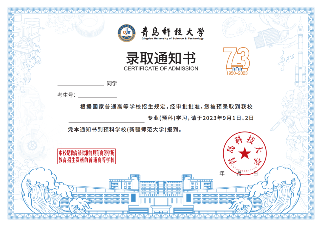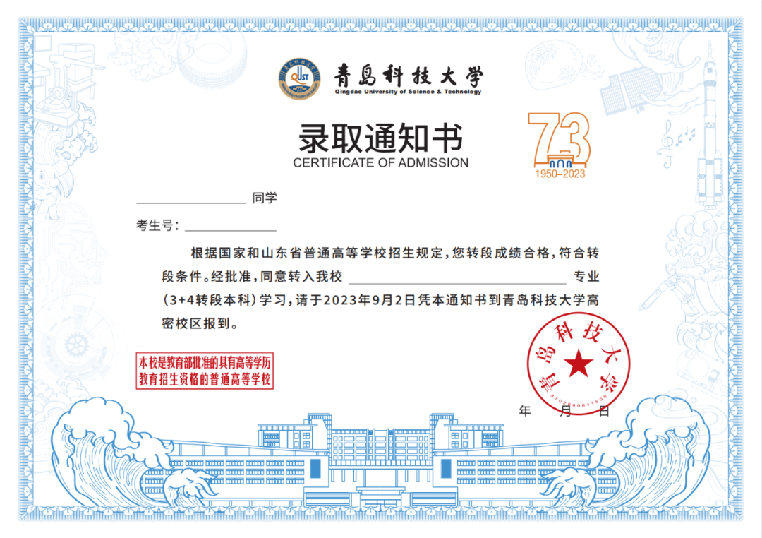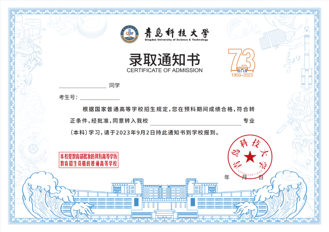 普通本科和预科转正本科专业录取学生凭录取通知书