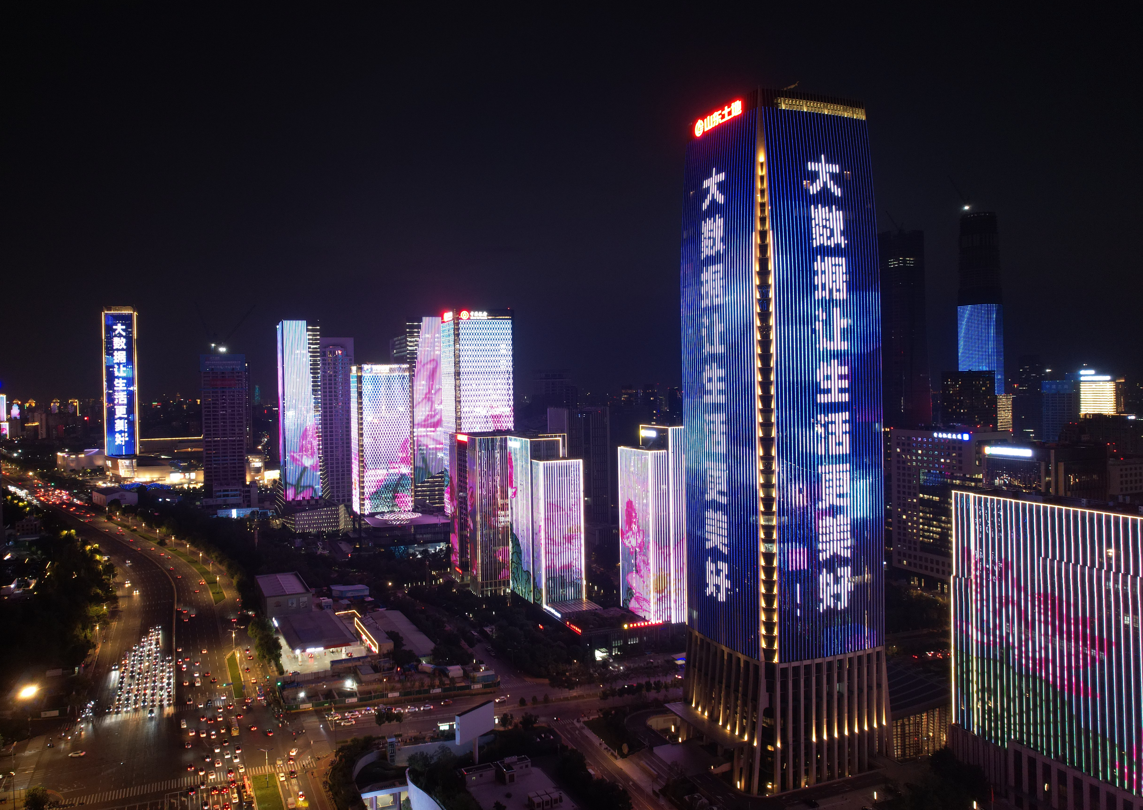夜幕阑珊,华灯初上,齐鲁大地静悄悄的,城市的灯光如星光点点在暗夜中闪烁。霎时间,一抹“数字蓝”点亮城市夜空。紧接着,一栋栋高层写字楼、一座座连锁商超,从济南绿地中心到奥体经十路沿线,再到青岛浮山湾、烟台滨海广场、淄博金融中心、威海幸福门等,山东16市地标建筑的百余栋楼宇,瞬间点亮,数字城市之光宛如星星之火,燎燃整片齐鲁大地,为全省人民送上一场璀璨酷炫、科技感十足的光影盛宴。
