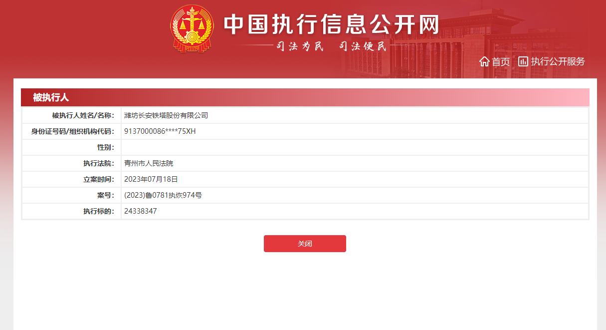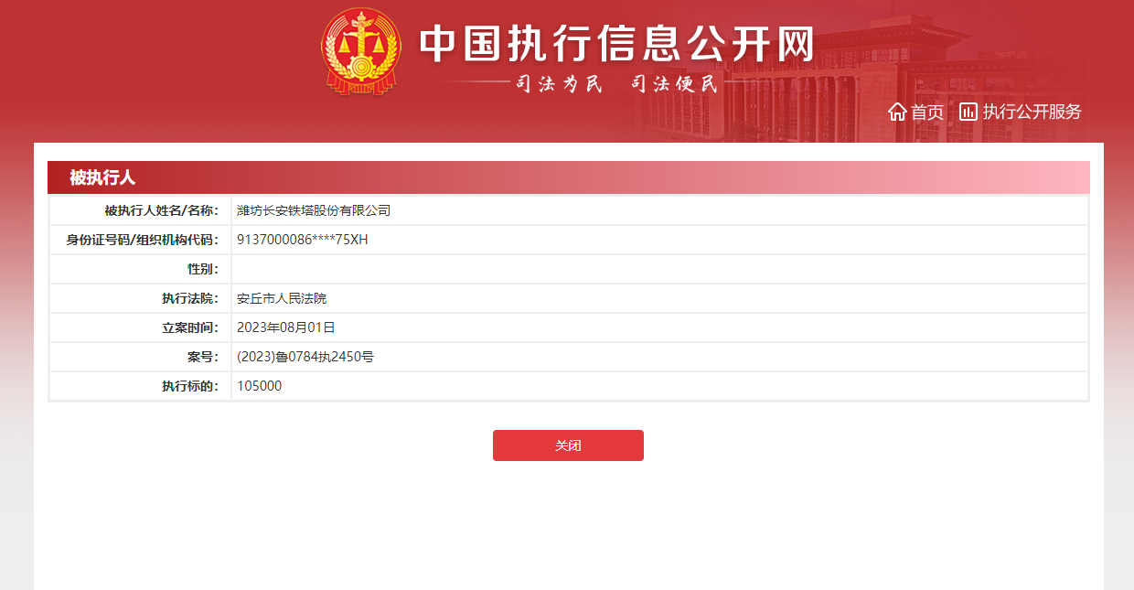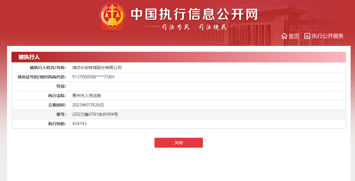 潍坊长安铁塔连续被执行,数额近2500万元