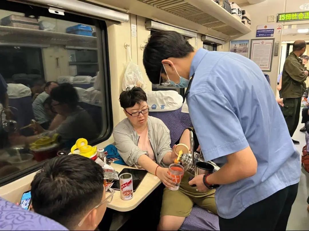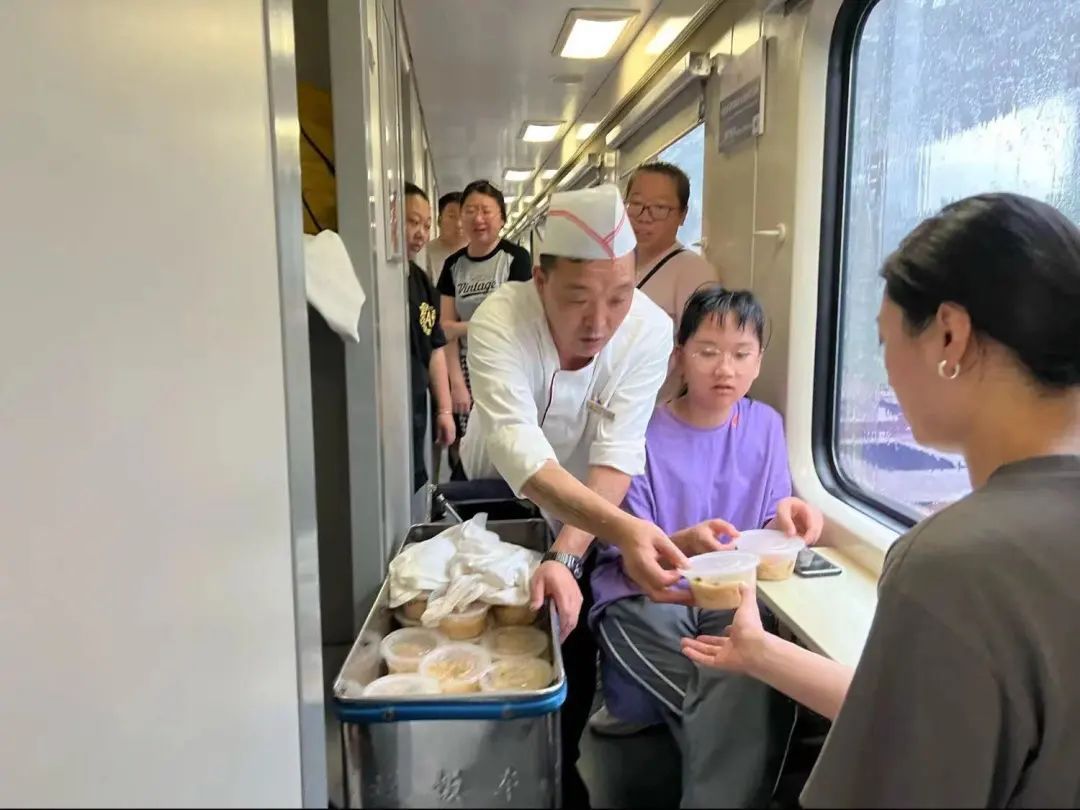 7月31日清晨,旅客逐步向餐车聚集,人越来越多,不少旅客情绪激动,列车长杨龙带领乘务班组人员一边发放物资,一边安抚旅客。列车员赵阳哽咽向大家喊话:“大家千万不要拥挤,不要发生任何危险,我就是因为穿了这身衣服,我得对得起大家。”此刻,旅客的情绪得以逐步平复。