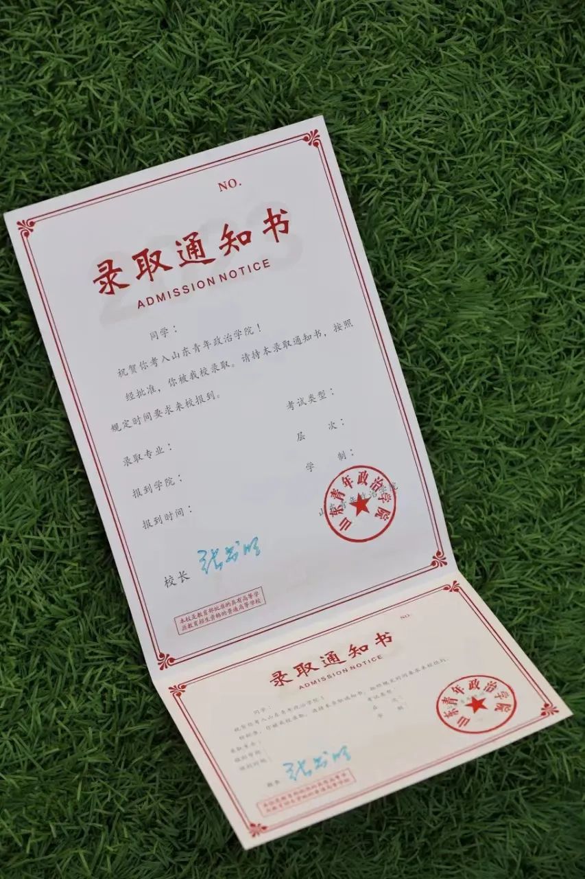 山东青年政治学院2023年录取通知书