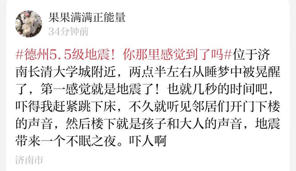 济南长清情报员:睡梦中被晃醒,地震带来一个不眠之夜!