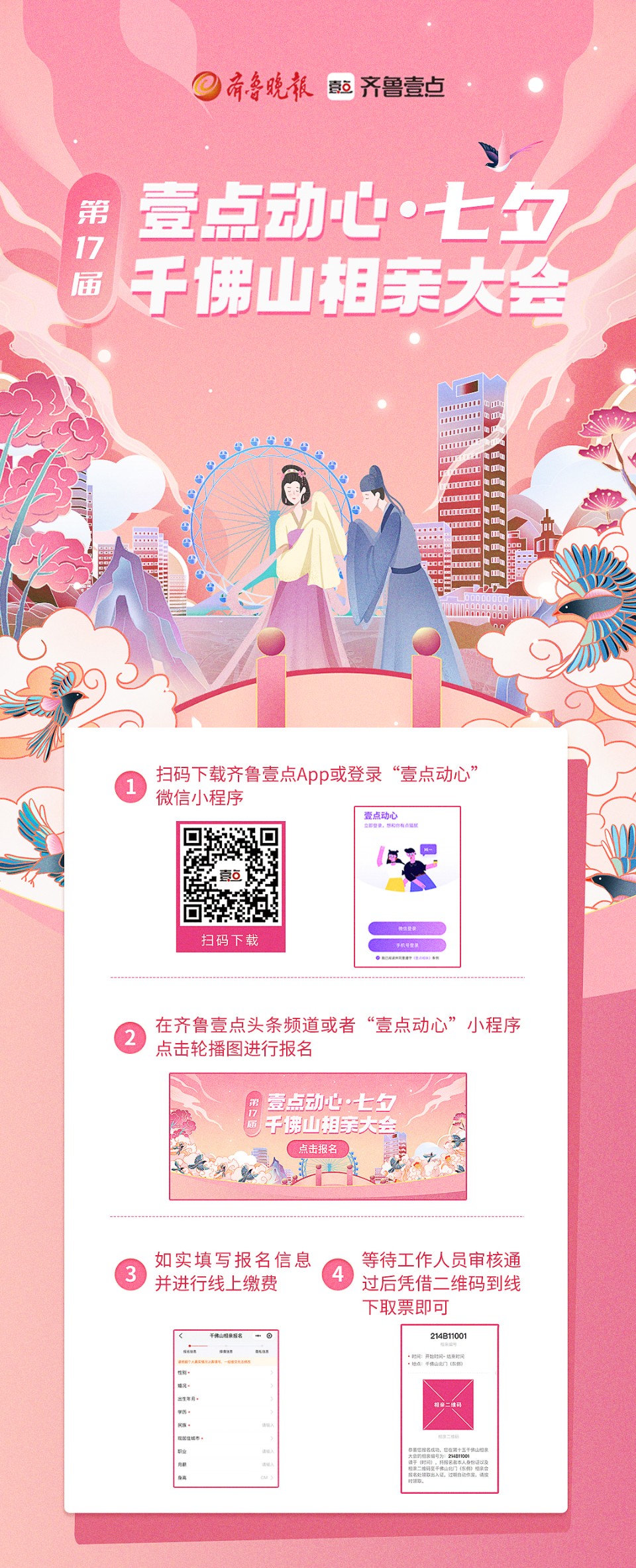 先努力锤炼自己,而后在这对的时间,与同样发着光的你相遇,正是爱情最美的样子!由齐鲁晚报·齐鲁壹点举办的第17届壹点动心·七夕千佛山相亲大会报名倒计时,报名截止至8月11日!