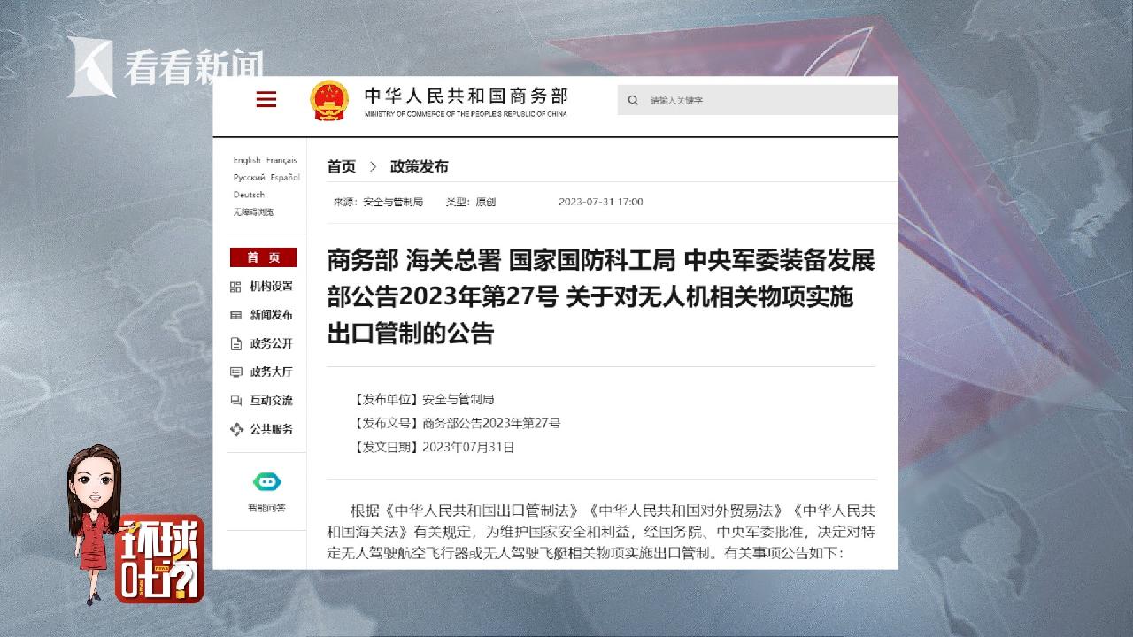 最后,还有一则新闻,和大家分享。从9月1日开始,我国将对部分无人机及相关物项实施出口管制。