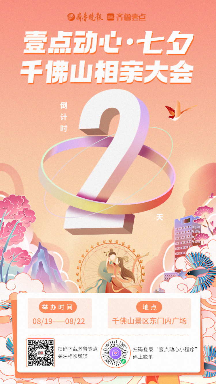 有生之年,欣喜相逢!距离齐鲁晚报·齐鲁壹点举办的七夕千佛山相亲大会仅剩2天,这场属于你的双向奔赴的浪漫爱情,正在等待你的邂逅!8月19日—22日,七夕千佛山相佛山相亲大会集结3000余位优质嘉宾。各类高颜值、高学历、高收入嘉宾,任君相遇、相识、相知,想恋爱就来千佛山,偶遇你的命中注定吧!