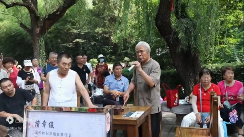 年近80岁的蒲松龄第十一世孙、国家级非遗项目《聊斋俚曲》代表性传承人、蒲松龄纪念馆名誉馆长、淄川区聊斋俚曲艺术团艺术顾问蒲章俊,潜心挖掘搜集整理俚曲曲谱,经常走进校园开展教学传承,参与聊斋俚曲校园传唱研讨活动,培训骨干音乐教师27人。网络热搜火爆聊斋旅游以来,他天天带着演出团队在景区为各地游客献唱《银纽丝》《玉娥郎》等俚曲曲目,彰显着山东非遗保护十大模范传承人的责任担当。