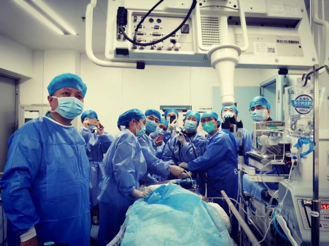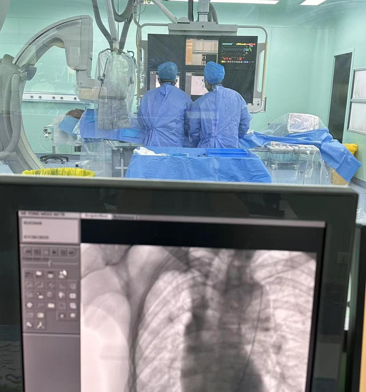 介入呼吸病学是一门新兴学科。我国现正处于人口老龄化时期,越来越多的呼吸疾病患者有多种并发症、基础病并存的情况,特别是肺部恶性肿瘤、慢性肺栓塞、肺气肿肺大泡等患者,单纯内科全身药物治疗往往效果欠佳。在“内科外科化、外科微创化”的大环境下,近年来,临沂市人民医院在呼吸介入领域不断实现新突破,能够熟练完成镜下肿物电切、电凝、冷冻、电圈套扎、激光、气管狭窄局部球囊扩张、支气道架植入、肿瘤滋养血管栓塞、肺内肿瘤局部化疗药物灌注、大咯血血管介入栓塞等各种复杂介入手术,已成功为许多晚期肿瘤、气道狭窄、咯血等患者缓解痛苦,提高了患者生活质量。