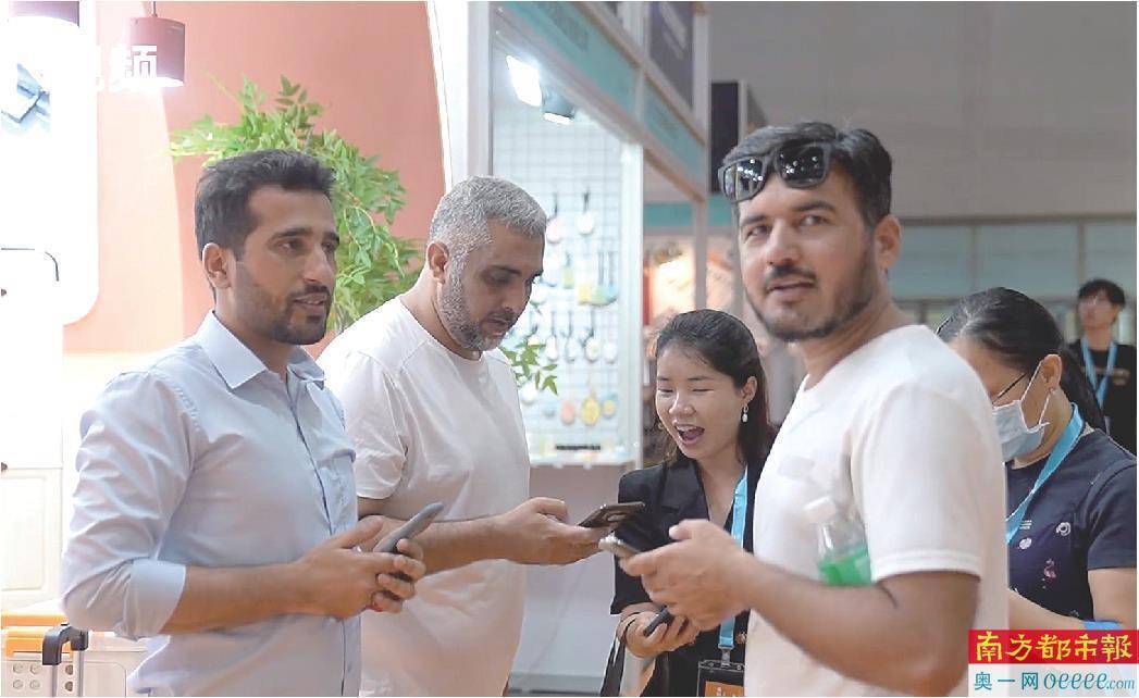 广州琶洲,海外买家在本届跨交会现场咨询产品详情。