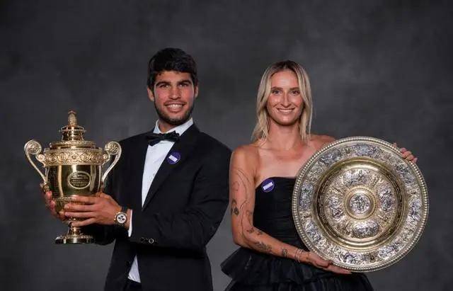 新科温网男单冠军阿尔卡拉斯 、女单冠军万卓索娃。(图片来源:温网组委会)