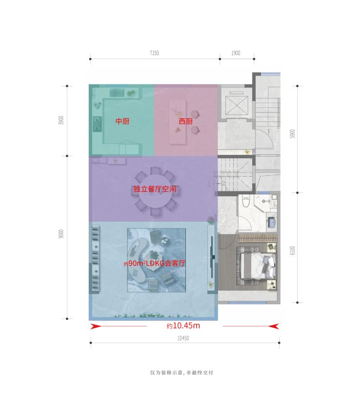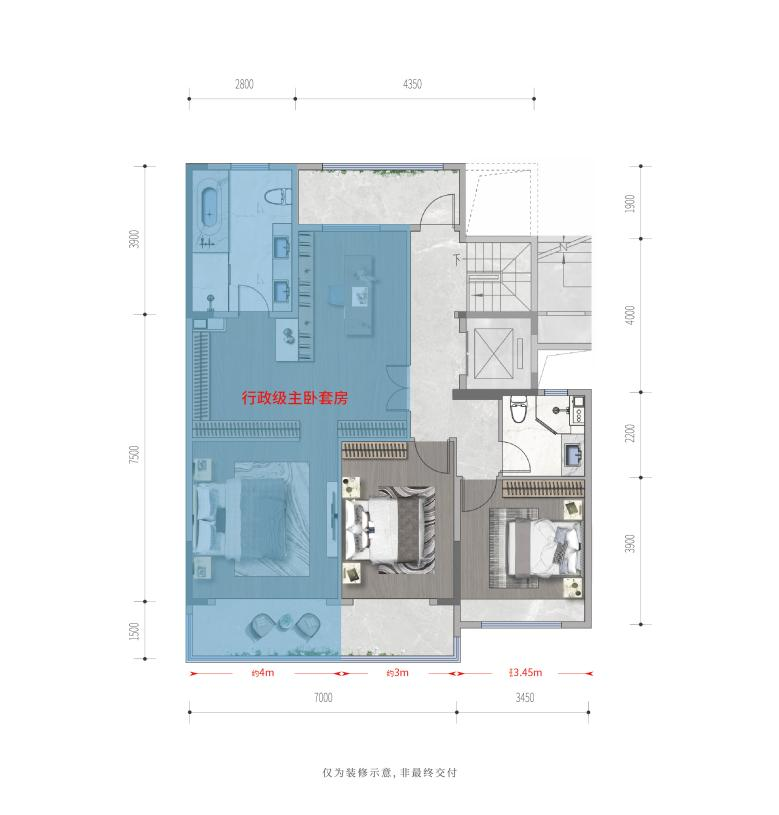 在墅居理念中,空间感至关重要。市面上不少的叠墅产品单层面积仅有85-90㎡左右,再去掉楼梯、电梯,各个功能区的实际可利用面积更小,比较典型的就如:餐厅局促、卧室储物空间缺失等,客户虽然花重金仅仅买下了别墅业态,但实际居住体验却很差。