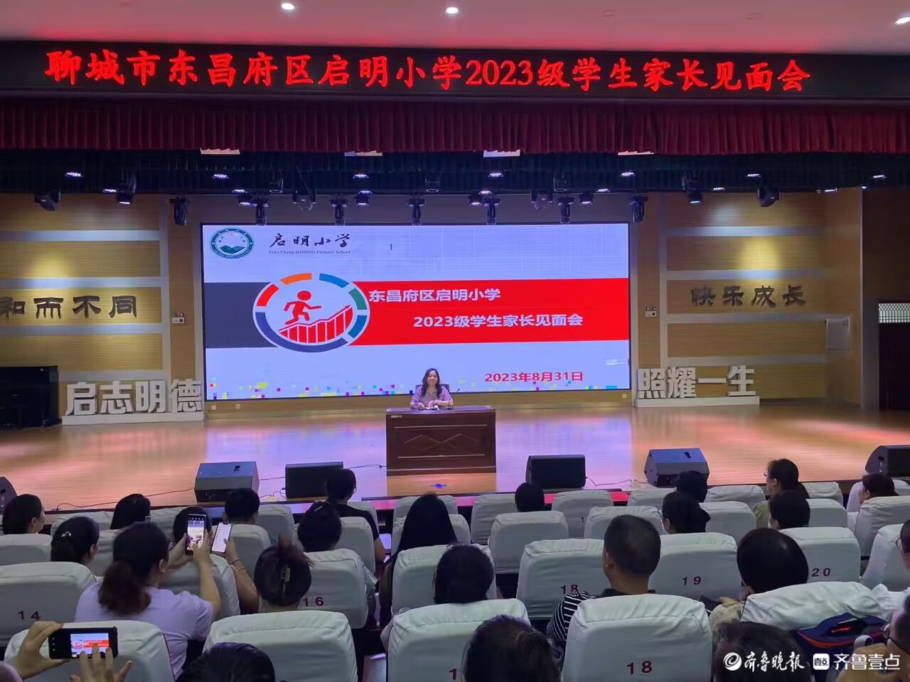随后,全体家长来到报告厅,共同聆听启明小学校长谭春慧的讲座。谭春慧从大环境出发介绍了这届孩子的共性,从情绪、知识结构、学习习惯、思维方式、自我管理五大要点的阐述中,让家长朋友感受到学校在培养综合性、素养型人才,促使学生全方位发展的教育目标;同时提出理解、信任、配合等关键点,指导家长助力孩子的成长。