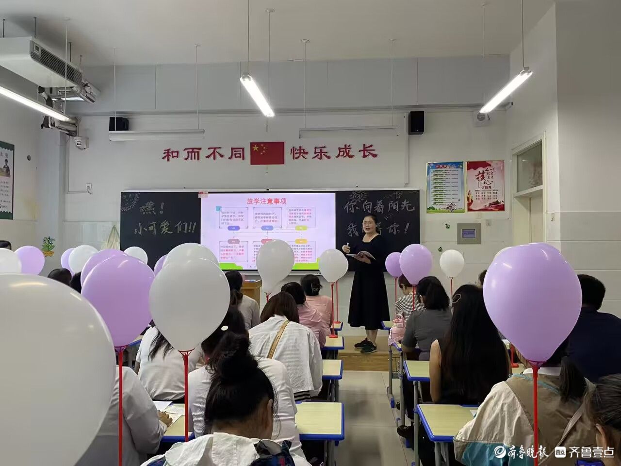 为确保新生入学工作高效、有序进行,教师们利用假期时间精心布置校园与教室,各司其职,做好各项准备。在学校老师的引导下,孩子们牵着爸爸妈妈的手,踏着欢快的步伐,洋溢着甜美的笑容,满心期待地走进校园。窗明几净的教室、摆放整齐的桌椅、图文并茂的黑板报、可爱绚丽的气球......孩子们处处感受到了老师们的浓浓爱意。