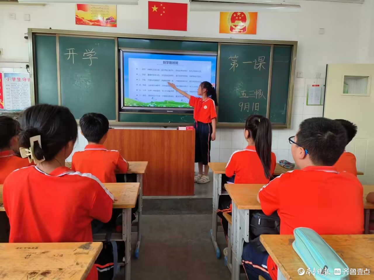 云天收夏色,木叶动秋声,在这个收获的季节里,迎来了2023年秋季学期。新的学期寄托着新的希望,为了帮助学生从假期的节奏中回归到日常的校园学习生活状态,进一步推进学校教育教学和安全工作的开展,9月1日上午东昌府区振兴路小学开展了“开学第一课”主题班队会。