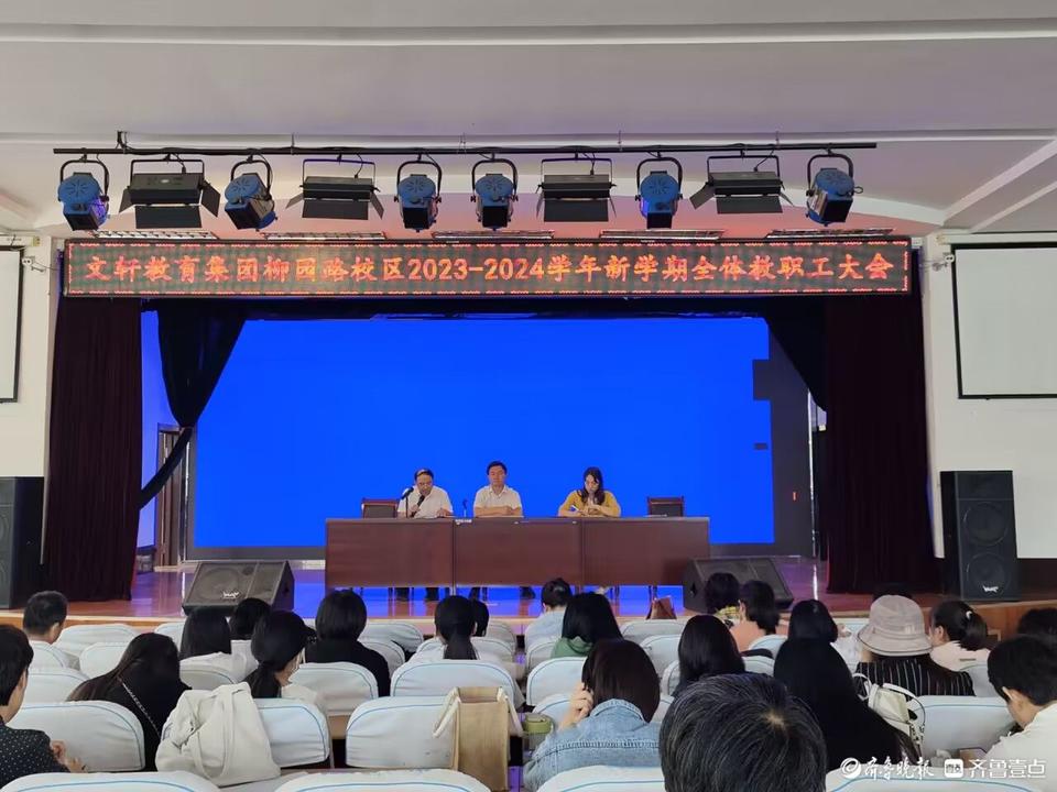 启航新学期,谋划新篇章。为落实区教育工作要求,凝聚全体教职工共识,统一思想,全力做好新学期各项准备工作,8月28日上午,文轩教育集团柳园路校区召开2023学年第一学期新学期教职工大会。