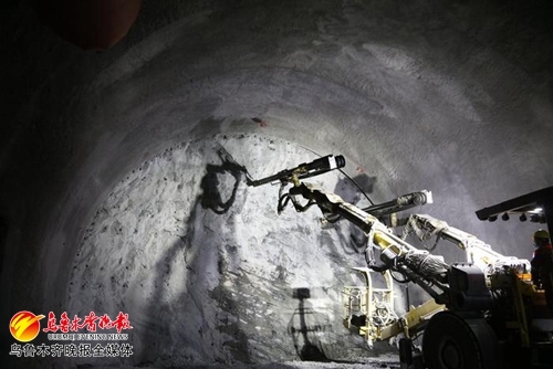 9月1日,G0711线乌鲁木齐至尉犁高速公路天山胜利隧道出口端隧道内,多臂凿岩台车正在施工。通讯员王亮摄
