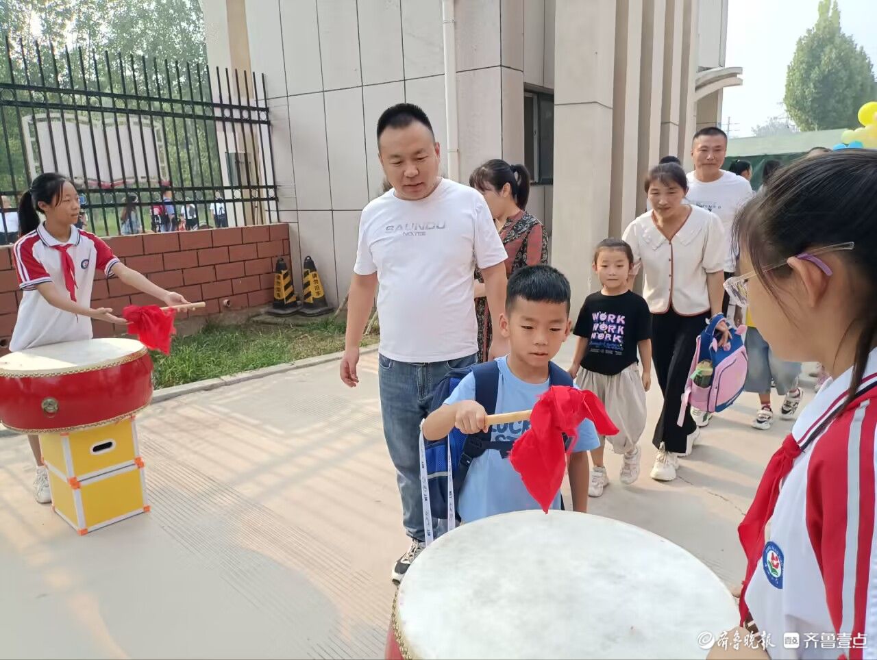 一年级新生在家长的陪伴下早早地来到学校报到,他们脸上洋溢着幸福的笑容,迎来了成长中的重要时刻,开启了属于自己的求知之旅。