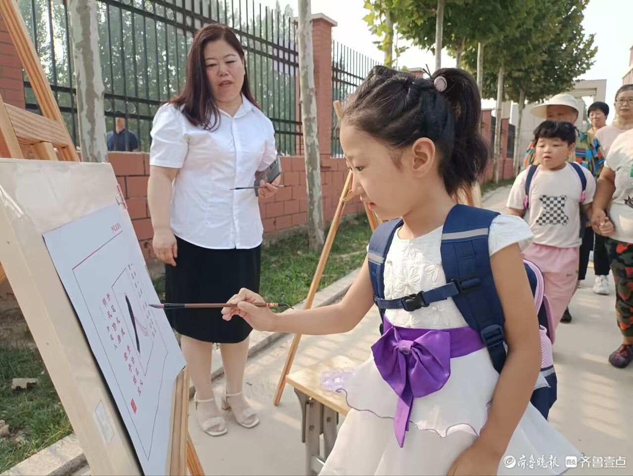 朱砂启智,童蒙养正。香江小学的老师们为孩子们点朱砂、送祝福。一颗颗红“智”寓意着唤醒、激励,希望孩子们从此心明眼亮,品端行正。