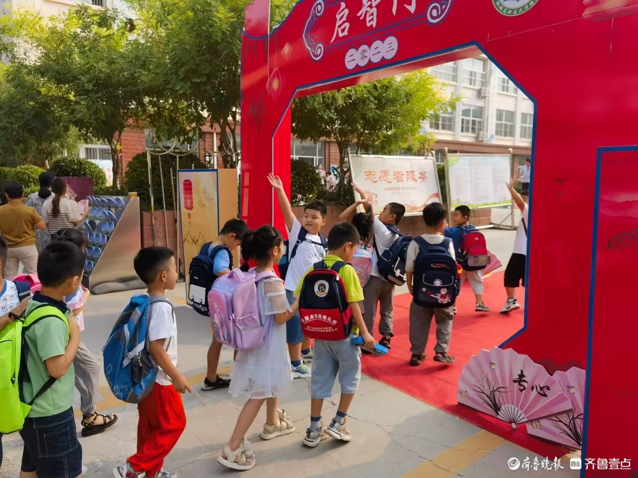 早上八时许,孩子们在家长的陪伴下、在校领导和老师们亲切的引导下迈进了校园,穿拱门、进启智门,踏过红毯,在合影墙上留下一个个精彩的瞬间,这些寓意着孩子们从此有了一个新的名字——小学生。在以后六年的光阴里,他们将在这里学习知识、发展思维,向着未来扬帆远航。